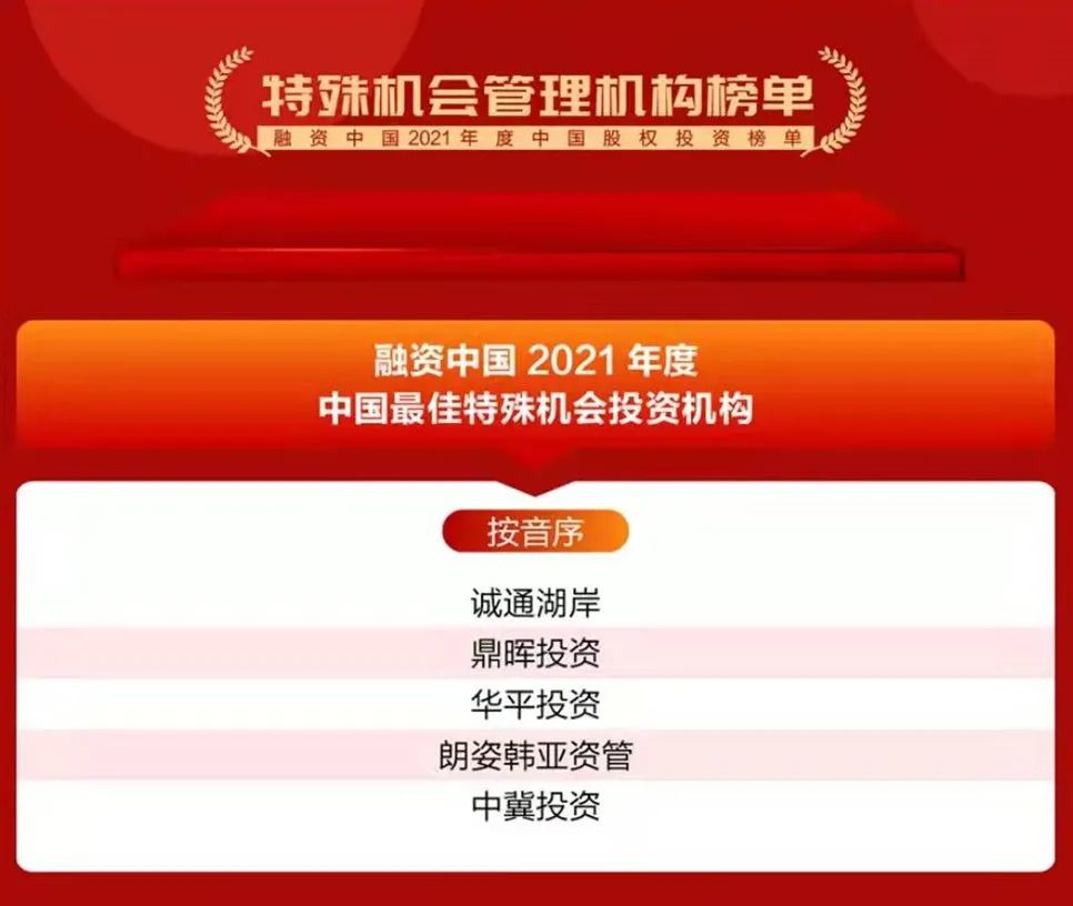 誠通湖岸入選“融資中國2021年度中國最佳特殊機會投資機構(gòu)”